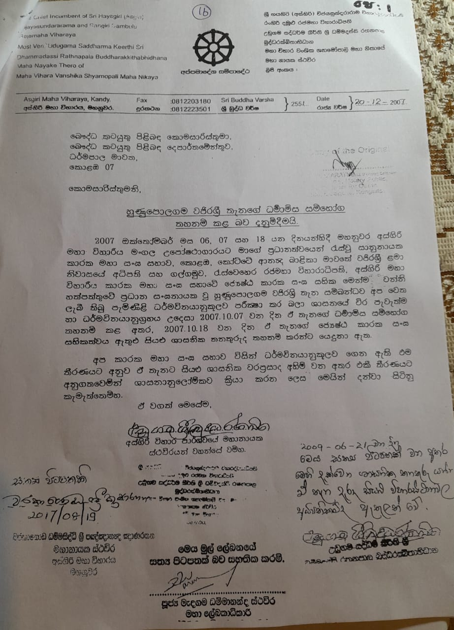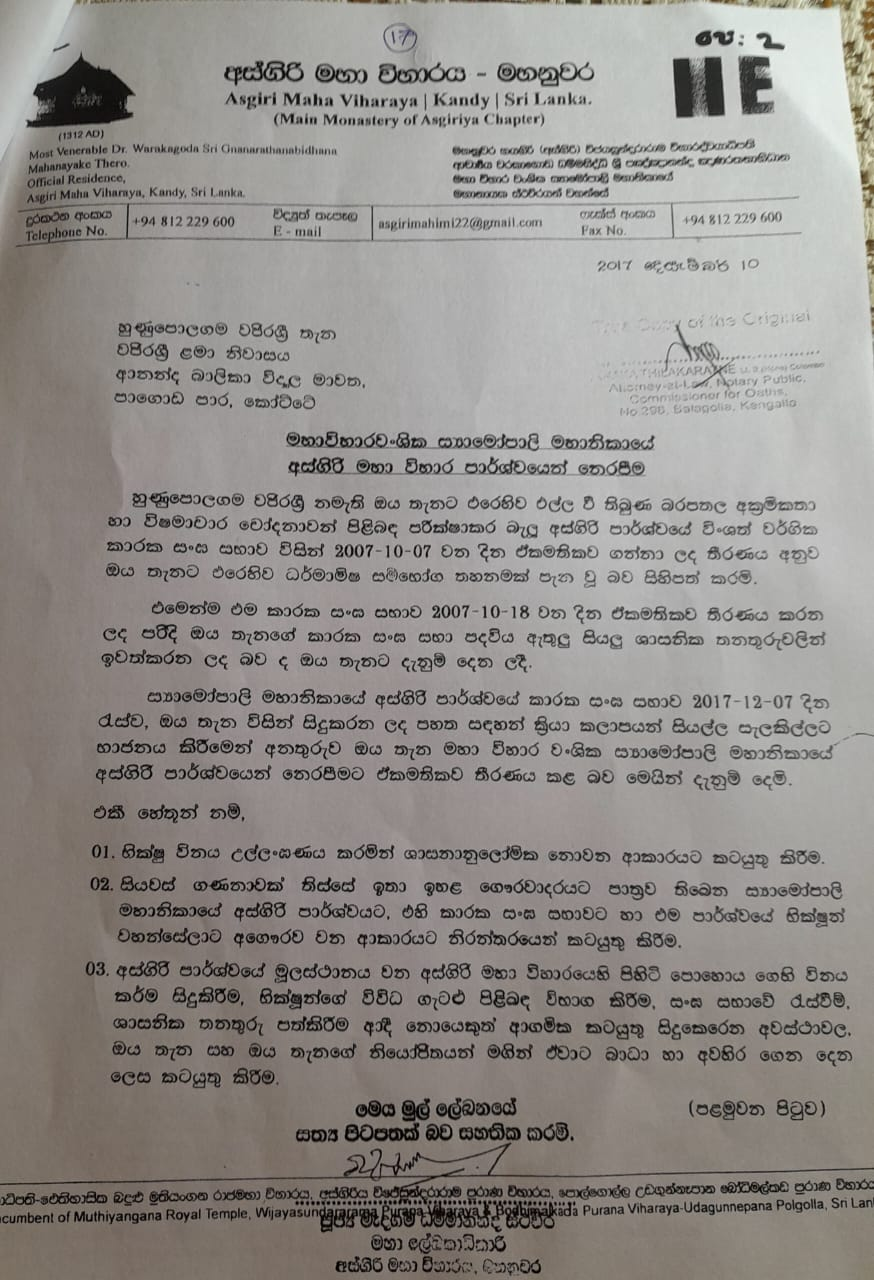 සිවිල් ක්රියාකාරී හා ජනමාධ්යවේදී කැලුම් අමරසිංහ විසින් අද අපරාධ පරීක්ෂණ දෙපාර්තමේන්තුව හමුවේ ආන්දෝලනාත්මක පැමිණිල්ලක් ඉදිරිපත් කරන ලදී. ඒ, අස්ගිරි මහා විහාරය මගින් සසුනෙන් නෙරපා හරින ලද හුනුපොළගම වජිර ශ්රී නම් චිවරධාරියකුට විරුද්ධවයි.