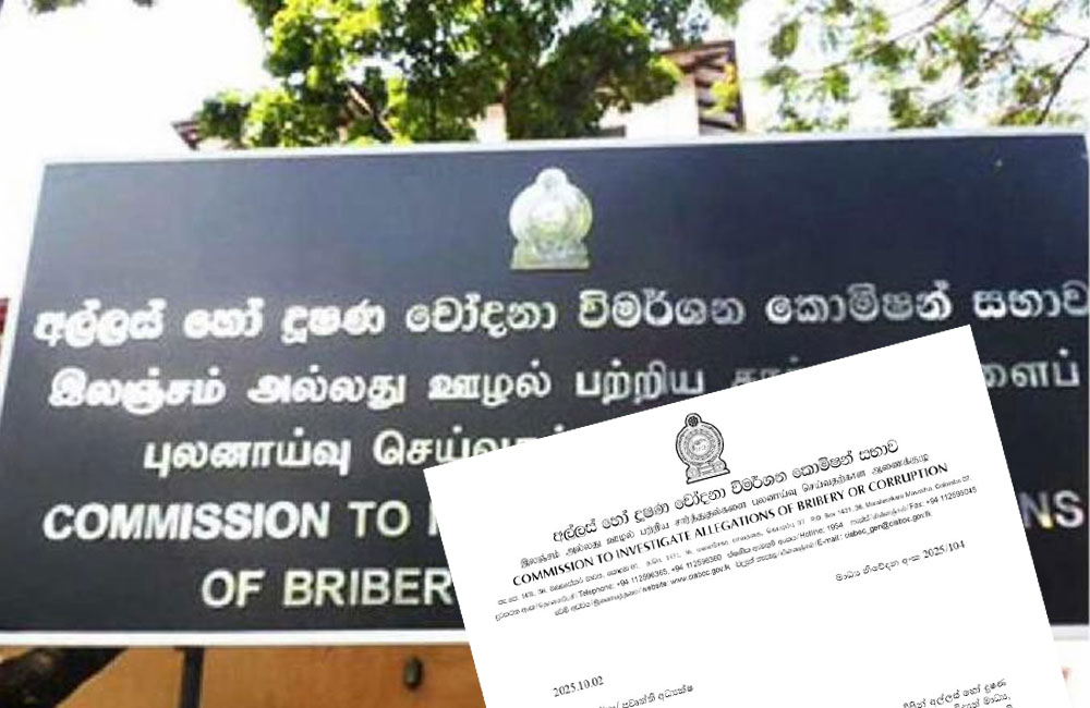 අල්ලස් හෝ දුෂණ චෝදනා කොමිෂන් සභාවෙන් විශේෂ නිවේදනයක්