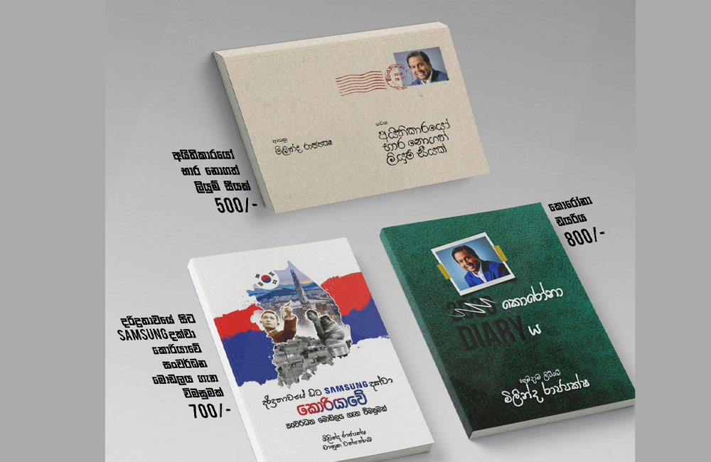 මිලින්ද රාජපක්ෂ විසින් රචිත පහත කෘති මේ සාහිත්ය මාසයේ දී DELIVERY ගාස්තු රහිතව ඔබ වෙත ගෙන්වා ගත හැකි බව kbooks. ආයතනය දන්වා සිටී.
