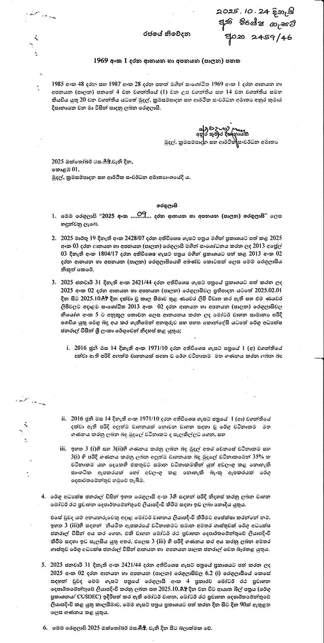මුදල්, සැලසුම් සහ ආර්ථික සංවර්ධන අමාත්යාවරයා වශයෙන් ජනාධිපති අනුර කුමාර දිසානායක මහතාගේ අත්සනින් යුතුව ඊයේ (24) සිට බලපැවැත්වෙන පරිදී මෙම ගැසට් නිවේදනය නිකුත් කර ඇත.