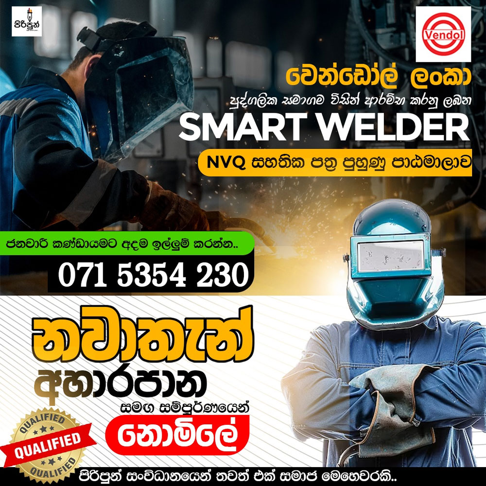 විරැකියාවෙන් පෙළෙන වයස අවුරුදු 18 සම්පූර්ණ වූ තරුණ තරුණියන්ට ජීවිතය ජය ගැනීමට නොමිලේ ස්මාර්ට් වෙල්ඩර් පුහුණු පාඨමාලාවක් ( NVQ3 මට්ටමේ) ළගදීම ආරම්භ කිරීමට කටයුතු යොදා ඇතැයි 'පිරිපුන්' සංවිධානයේ සභාපති ඉංජිනේරු ආනන්ද දේවසිංහ කියයි.