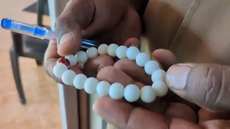 සැකකරු සමඟ සොයා ගැණුනු ඇත් දළවලින් සකසන ලදැයි කියන අත් පළඳනාව