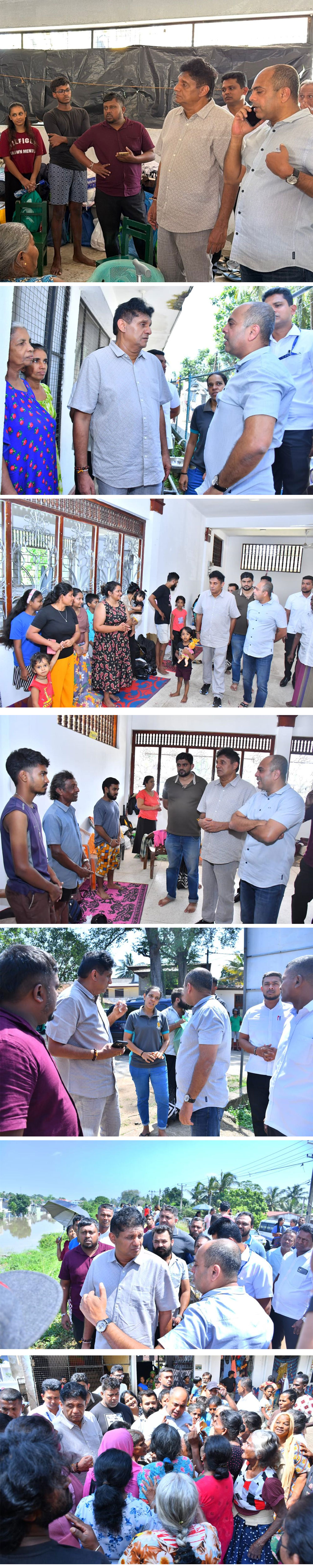 එහිදී ගං වතුරෙන් පීඩාවට පත් ජනතාවගේ සුවදුක් විමසා බලමින් සුහද කතා බහක ද නිරත වූ සජිත් ප්රේමදාස පීඩාවට පත් ජනතාවට කඩිනමින් සහන ලබාදීමට කටයුතු කරන බවද වැඩිදුරටත් පැවැසී ය.