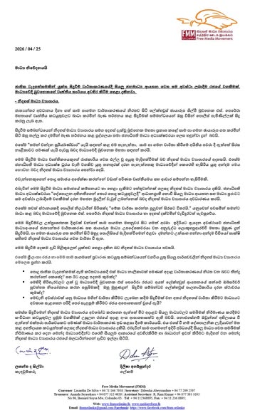 මතු පළ වන්නේ එම සම්පූර්ණ මාධ්ය නිවේදනය යි.